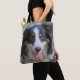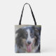 Joli Patch, un chien coloré à la bordure tricolore avec un oeil bleu. Photographie de Susan. Visitez mon magasin à Smilin' Eyes Treasures pour plus de cartes et cadeaux de design de fleurs, d'animaux, de nature et d'arts numériques.