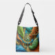 An abstract fantasy land in shades of orange, green, and blue, covers this unique Tote Bag.