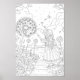 Bring this magical moment to life with your own colors! This enchanting coloring page features a young girl in a gingham dress reaching for glowing dandelions and fluttering lights under a dreamy sky. From the detailed florals to the swirling night clouds, every element invites creativity and calm.