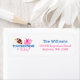 Fun pink and blue touchdowns or tutus themed gender reveal return address labels. This design feature a football, tutu, green stripes and pink polka dots.