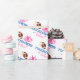 Niedliche rosa und blaue Touchdowns oder Tutus-Thema Geschlecht enthüllt Packpapier.