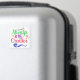 Ce bouton "Toujours être créatif" a des lettres colorées en vert, violet et rose, ciseaux, fil, un pistolet à colle et ruban.