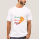 Un t-shirt plein d'humour qui capture ce que nous aimons en Italie : C'est des pizzas et des paysages du Vieux Monde. Les couleurs textuelles vives représentent ce que nous aimons dans les pizzas : les garnitures, la viande, la sauce, le ketchup et bien sûr la pâte à pizza cuite au four.