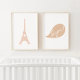 Ajoutez une touche de finesse à l'espace de votre petit avec cette série de 2 gravures d'art "bonjour" et de la Tour Eiffel.