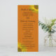 Donnez à vos invités le calendrier et l'ordre de votre cérémonie de mariage d'été ou d'automne avec le joli Sunflower Jaune sur Orange Wedding Program. Cet élégant programme de mariage floral présente un tournesol jaune ornant le coin d'un arrière - plan orange.