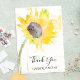 Composez un message chaleureux de remerciement et d'appréciation pour les cadeaux reçus après une fête d'été ou d'automne, la douche nuptiale du jardin ou le mariage avec l'élégante tournesol jaune sur blanc Mariage plat Merci Note. Ces notes de remerciement personnalisées et élégantes présentent une photo florale à effet d'aquarelle peinte numériquement d'une fleur de tournesol jaune sur la tige avec un arrière - plan blanc éclatant.