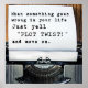 Quand la vie vous lance une boule de courbe, voici de bons conseils ! "Quand quelque chose ne va pas dans votre vie, criez simplement 'PLOT TWIST' et passez à autre chose" - grand conseil! :) Et un grand rappel en une journée stressante! Cela fait un cadeau fabuleux et encourageant! C'est excellent, bien sûr, pour Noël ou Anniversaire - mais aussi une belle façon de réconforter quelqu'un qui traverse une période difficile!