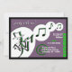 Invitations violettes et vertes avec un thème de musique jazzy.