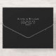 Faire-part de mariage noir élégant avec vos initiales monogrammes à l'intérieur d'une crête mariage, vos prénoms, "Réception à suivre" et "Rsvp" présenté dans un script chic, vos détails d'invitation dans la typographie serif classique, et une carte postale RSVP déchirante blanche, le tout rendu dans votre choix d'or véritable, argent ou feuille d'or rose. Si vous le souhaitez, vous pouvez ajuster la taille du script pour des noms plus longs ou plus courts en modifiant l'outil de conception.