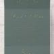 Élégante faire-part de mariage tout-en-un vert sauge qui présente vos initiales monogrammes à l'intérieur d'une crête mariage classique, vos noms, "Réception à suivre" et "Rsvp" présenté dans un script de calligraphie chic, vos détails d'invitation en lettres simples, et une carte postale réponse RSVP déchirante, le tout rendu dans votre choix d'or, argent ou rose feuille d'or. Si vous le souhaitez, vous pouvez ajuster la taille du script pour des noms plus longs ou plus courts en modifiant l'outil de conception.