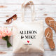 Remplissez ce joli sac avec vos gâteries préférées pour accueillir les invités à votre mariage! Vous pouvez modifier la couleur du coeur ou du texte. Pour modifier les couleurs, cliquez sur personnaliser, puis sur "modifier à l'aide de l'outil de conception". Sélectionnez l'élément à modifier, puis utilisez les outils pour effectuer les modifications.