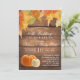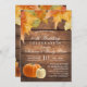 Invitation d'anniversaire de mariage automnal rustique en bois avec feuilles et citrouilles