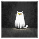 A simple yet expressive illustration of a fluffy white cat with a perfectly unimpressed look and striking yellow eyes. The textured dark background enhances the contrast, giving this design a moody, artistic feel with a touch of humor.