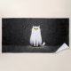 A simple yet expressive illustration of a fluffy white cat with a perfectly unimpressed look and striking yellow eyes. The textured dark background enhances the contrast, giving this design a moody, artistic feel with a touch of humor.