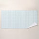 Towels with a light blue fish pattern hang neatly on a silver rod against a white wall. Below, a matching hand towel is displayed flat, exuding a fresh, nautical vibe.