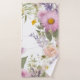 Bath towels featuring beautiful blooming flowers in pinks, yesllow and greenery. Striking arrangement flor summer or spring bathroom decor, nice guest towels, Mother’s Day gift, bride or anytime