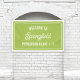 Babydusche mit grünem Straßenschild mit weißem Text. Passen Sie mit dem Namen Ihrer Stadt auf.