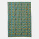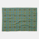 Ein lebendiges Muster zeigt mehrfache quadratische Motive in den Farben Grün, Gelb und Blau und erzeugt so einen kaleidoskopischen Effekt. Das Design ist symmetrisch und erinnert an ein gewebtes oder an einen Wandteppich erinnerndes Aussehen.