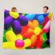 Bündel aufblasbarer Spielzeugballons, die als Blume verschiedener Farben geformt sind. Frohe Ferien! Sei glücklich! Fleecedecken.