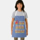 Colorful apron with red train hauling the entire alphabet.