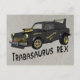 Ein computergeneriertes, schwarzes und goldenes Bild eines maßgeschneiderten DDR Trabant Automobils. Der Spitzname des Personenkraftwagens, Trabasaurus rex, erscheint in einem geeigneten Schriftart sowohl an der Fahrzeugtür als auch unter dem Bild. Das Fahrzeug trägt ein Idaho-Nummernschild mit dem Aufdruck "TRABI REX", das von den mythischen Warschauer Pakt Wonder Wheels (Classic Commie Cars) in Sandpoint angepasst wurde. Die Trabant war das Volkswagen der DDR "Trabant" bedeutet reisende Begleiter und wurde durch das russische Wort "sputnik" mit der gleichen Bedeutung inspiriert. Über 3 Millionen Trabants wurden in der Zeitspanne von 30 Jahren produziert. Der Motor des Trabant war untertrieben, ineffizient und verursachte eine große Verschmutzung. Der viel geschmähte Trabant, oder Trabi, wie es allgemein bekannt war, war lange der Hintern von Witzen, aber in den letzten Jahren trendy geworden. Einige wurden in die Vereinigten Staaten eingeführt. Dach, Kofferraumdeckel, Kapuze, Fender und Türen wurden mit Duroplast, einem harten Kunststoff ähnlich Bakelit, aus gerecycelt Werkstoffen hergestellt: Baumwollabfall aus der sowjetischen Gewerkschaft und Phenolharze aus der ostdeutschen Farbstoffindustrie. Dies machte den Trabant zum ersten Wagen mit einem Körper aus gerecycelt Material und war zum Teil verantwortlich für die falsche Vorstellung, dass es aus Pappe gemacht wurde. Verschiedene Crash-Testergebnisse zeigten, dass sie besser abliefen als vergleichbare Schlupflöcher für zeitgenössische Western.
