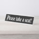 Dieses traditionelle und altmodische Design enthält die Meldung "Bitte nehmen Sie Platz!". Dies könnte in einem Sitzbereich oder einem gewartet Raum genutzt werden, um Kunden, Besucher oder Kunden darüber zu informieren, dass sie in Kürze unterstützt werden und in der Zwischenzeit einen Sitzplatz einnehmen sollen.