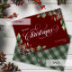 Traditionell rot grüne Weihnachtskarte. Die Vorderseite hat eine tiefrote Grundfarbe und eine doppelte Aquarellweih-Dekoration in zwei Ecken mit roten Beeren, Grün und Kiefernzapfen. Ein Wirbler Skript-Schriftart in der Mitte der Karte Sprichwort Frohe Weihnachten. Einfache Anpassung und Änderung Ihrer Familienunterschrift und Jahr. Die Rückseite der Karte hat ein traditionelles grünes Gingham-Muster, das die Farben Rot und Grün für die Feriensaison verstärkt. Sehen Sie sich die anderen passenden Produkte in dieser Kollektion für ein zusammenhängendes Thema an.