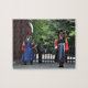 Die traditionellen königlichen Wachen stehen außerhalb des Palastes in Seoul, Südkorea