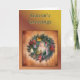 Ein Gemälde eines Kiefernkranzes mit Weihnachtsschmuck bildet den Mittelpunkt dieser herzlichen Grußkarte. Die Nachricht ist die Grüße der Saison. Die innere Botschaft kann an Ihre Bedürfnisse angepasst werden. Die Botschaft des Designers lautet: "Alles Gute für die Urlaubssaison und das kommende Jahr!". Original Kunst von Don und Judi Hall in Gingezel.
