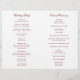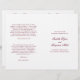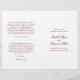 Klassisches Hochzeitsprogramm mit Akzenten in eleganter Kalligraphie-Typografie. Die Vorderseite hat Ihre Veranstaltungsdetails, die Innenseite hat Ihre Hochzeitsfeier und die Reihenfolge der Zeremonie. Die Rückseite hat eine Vorlage für Ihre Nachricht / Anführungszeichen. Der gesamte Text ist bordeauxfarben über einem weißen Hintergrund und kann durch Anklicken des Buttons "Anpassen" in beliebige Farben geändert werden. Diese Hochzeitsprogramme sind perfekt für eine feierliche Hochzeit.