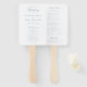 Klassischer Hochzeitshandfan mit Akzenten in eleganter Kalligraphie-Typografie. Alle Texte sind in staubblauem Blau über einem weißen Hintergrund und können durch Anklicken des Buttons "Anpassen" in beliebige Farben geändert werden. Diese Handfans für das Hochzeitsprogramm sind perfekt für eine feierliche Hochzeit.