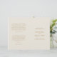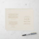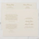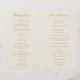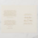Klassisches Hochzeitsprogramm mit Akzenten in eleganter Kalligraphie-Typografie. Die Vorderseite hat Ihre Veranstaltungsdetails, die Innenseite hat Ihre Hochzeitsfeier und die Reihenfolge der Zeremonie. Die Rückseite hat eine Vorlage für Ihre Nachricht / Anführungszeichen. Der gesamte Text ist in Imitaten goldfarben über einen neutralen Elfenbeinhintergrund und kann durch Anklicken des Buttons "Anpassen" in beliebig viele Farben geändert werden. Diese Hochzeitsprogramme sind perfekt für eine feierliche Hochzeit.