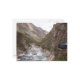 Carte postale du train bleu du chemin de fer Inca qui va de Cusco vers Machu Picchu en passant par la Vallée Sacrée ou la Vallée d'Urubamba avec de grandes montagnes et la rivière Urubamba au Pérou.