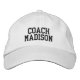 Coach Schwarzweiß personalisierte individuelle Name Textsport bestickte Baseballkappe. Erhältlich in vielen Farben und Optionen mit vollständig anpassbarem Text.