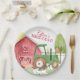 Bauernhof Geburtstagsparty Teller für Traktor-Thema Party. Perfekt für ein 3. Geburtstag Party (3-I-E-I-O) oder JEDES Alter. Fügen Sie Ihren Kinder Namen und Wortwahl der Wahl! Das Design besticht durch eine niedliche Tier- und Bauernszene mit roter Scheune, grünem Traktor, Kuh, Schwein und Hahn.