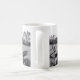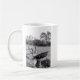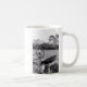 Ein nostalgisches Bild eines Vintagen Traktors, der im langen Gras sitzt, vergessen und hinter ihm verlassen. In Schwarz und Weiß genommen. Auf beiden Seiten links und rechts abgebildet. Weiße Tasse. 325 ml.