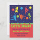Une soirée d'anniversaire trampoline amusante et colorée. Les couleurs orange, bleu, vert et jaune. Le design comprend des silhouettes de garçons et de filles qui sautent dans l'air autour de ballons et de confettis. Idéal pour une soirée trampoline ou toute fête qui est assez amusante pour que les enfants puissent sauter dans les airs. Super excitant !
