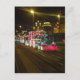 Carte postale avec photo de tramway décoré comme un train avec des lumières rouges, vertes, jaunes et blanches à Blackpool dans le cadre des illuminations annuelles