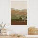 Stille Einfachheit in dieser gedämpften Hügellandschaft mit einem durchgehenden Linienbaum und texturierten faserartigen Schichten. Ideal für minimalistische Naturdrucke, erdfarbene Wandkunst und nachhaltige Dekorateure.