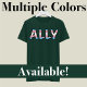 Ally in großen Buchstaben, gefüllt mit trans-Pride Flag Farben.