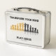 Lassen Sie andere mit dieser Metal-Lunchbox, die ein reflektierendes Schach-Set und den folgenden Schachratschlägen enthält, eine Doppelannahme machen, was sie mit einer Schachhaltung machen sollten: "Transform Your Mind Play Schach". Einprägbares Schach-Sprichwort Metal-Lunchbox für jeden begeisterten Schachspieler oder Schachlehrer!