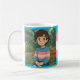 Coffee mug with a trans flag in light blue, pink and white with an anime transgender person in a trans sweater and a pride poem on the back.