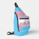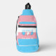 Sling Bag mit der Transgender Stolz Fahne mit kleinen Herzen in der Mitte des Designs. Rosa, Weiß und Blau-Flagge der Transpride-Bewegung; mit einem bearbeitbaren Textfeld für Ihren Namen oder Ihre Nachricht