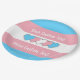 Papierteller mit der Transgender-Stolz-Fahne mit kleinen Herzen in der Mitte des Designs. rosa, weiße und blaue Flagge der Transstolerbewegung; mit einem bearbeitbaren Textfeld für Ihren Namen oder Ihre Nachricht
