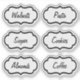 Einfach gerahmter Aufkleber in schwarz Farbe mit transparentem Hintergrund. Passen Sie Ihren Text oder das Wort Ihrer Wahl an oder personalisieren Sie ihn auf Ihren Küchengläsern.
