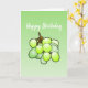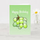 Köstliche grüne Trauben auf einer gefalteten Happy Birthday Card.