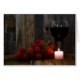 Rotwein mit Trauben und glühender Kerze auf rustikalem Holz