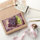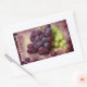 Cluster aus roten und grünen Trauben. Tropfen Wasser auf die Beeren. Texturierte Fotografie, grün und lila Farben. Drucke und Geschenke für Spaß und gute Laune. Rechteckige Aufkleber. Sie können den Text Wine erwartet ändern oder löschen.