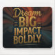 Ein kühnes und inspirierendes Design mit der Phrase "Dream Big Impact Bolly" in einem faszinierenden, auffälligen Farbschema. Der Text wird in einem dynamischen, modernen Schriftart mit einem Sinn für Energie und Entschlossenheit dargestellt. Die Gesamtkomposition ist sauber und wirkungsvoll und ermutigt den Einzelnen, seine Träume zu verwirklichen und nach Größe zu streben.