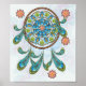 Ein wunderschönes türkisfarbenes Mandala-Traumdesign mit Blüten auf sanftem pastellfarbenem Hintergrund.